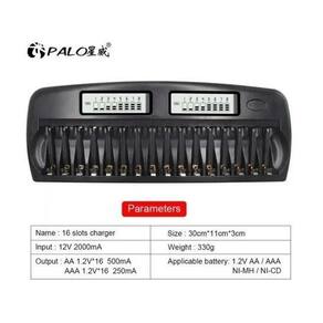 O carregador rápido de 16 baias para baterias recarregáveis nimh ou nicd aa/aaa palo nc31 consiste em um produto que carrega até 16 baterias nimh ou nicd aa ou aaa recarregáveis.