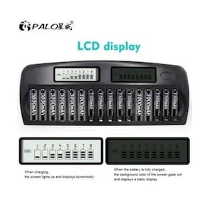 O carregador rápido de 16 baias para baterias recarregáveis nimh ou nicd aa/aaa palo nc31 consiste em um produto que carrega até 16 baterias nimh ou nicd aa ou aaa recarregáveis.