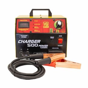 Carregador Baterias 50A Charger500 Power 220V V8Carga: 50 amperes com auxiliar de partida garantia de 1 ano; 12 volts; indicado para baterias de 4ah à 500ah; dimensões (cxlxa): 31 x 24 x 22cm; peso: 6 kg;chave de proteção contra inversão de polaridade e curto-circuito; proteção térmica; (baterias até 500a): motocicletas, jet ski, carros, caminhonetes e barcos.