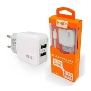 Carregador Turbo Duplo Kaidi Kd-301 2Usb + Cabo Usb
