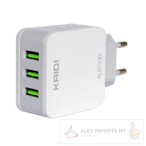 Carregador com fio Kaid Carregador Tomada Ultra Rápido Branco Cabo , Para Carregador portátil de tomada com 3 portas usb mais cabo, carrega ultra rápido. Kaidi tem nome Se for viajar não esqueça do seu carregador Característica: Material do carregador: Abs antichama Voltagem: Bivolt 110/220. Amperes: 3.1 a Entrada: Bivolt 50 60 Hz 0.6 a Saída: Dc 5 v - 3.1 A Max 15.5 w chips inteligentes. Lembre-se , Tudo que é Barato, Sai caro Segurança e , é aqui : Alex Imports MT