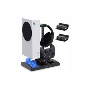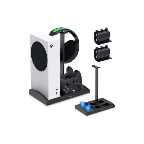 “Suporte para carregador Xbox Series S com ventilador e 2 baterias SUPORTE VERTICAL TUDO-EM-UM Esta torre de exibição de carregamento tudo-em-um foi projetada para resfriar e armazenar o console Xbox Series S. Com ventilador de resfriamento aprimorado, base de carregamento dupla para controladores Xbox Series S, 2 baterias recarregáveis extras de 1400 mAh e suporte para fones de ouvido para jogos. Ótimo para manter tudo o que é importante carregado e organizado em um só lugar. SISTEMA DE RESFRIAMENTO APRIMORADO O poderoso e aprimorado sistema de resfriamento com baixo ruído pode acelerar a circulação de ar, manter seu console Xbox Series S fresco e silencioso, prolongar a vida útil do seu Xbox Series S. Com o botão liga/desliga para ligar ou desligar o ventilador de resfriamento sempre que necessário. Não precisa mais se preocupar com o superaquecimento durante o carregamento ou o jogo. CARREGADOR RÁPIDO DE CONTROLE DUPLO O suporte de resfriamento vertical tem 2 slots para segurar e carregar os dois controladores sem fio Xbox Series S. Você pode carregar totalmente os dois controladores centrais XSS simultaneamente em 4 horas. Não precisa esperar, economize tempo e aproveite mais a diversão. O indicador LED integrado permite que você conheça rapidamente o status do carregamento. BATERIAS RECARREGÁVEIS DE 2x1400 mAh Nosso suporte de resfriamento vertical para a série xbox s vem com baterias recarregáveis de 2x1400 mAh, que podem executar ciclos de carregamento mais de 1500 vezes. Basta instalar a bateria no controle do Xbox Series S e não sair mais do jogo intenso quando os controles sem fio do Xbox Series S acabarem. IMPRESCINDÍVEL PARA O XBOX SERIES S O suporte de resfriamento Werleo é um projetado para caber perfeitamente no seu Xbox Series S. Deixe seus consoles Xbox Series S, controladores sem fio e fones de ouvido para jogos na posição vertical e de fácil acesso. É a solução de resfriamento, carregamento e organização mais completa para seu Xbox Series S. Apenas aproveite seu jogo!