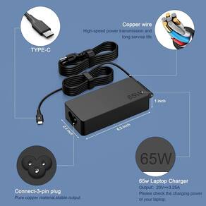 Carregador de Chromebook de 65 W USB c para Lenovo ThinkPad/Yoga, carregamento de laptop USB c de 65 W 45 W, substituto para HP, Dell Chromebook 3100, Latitude 5420, Asus, Samsung, Acer, carregador de computador USB C, fonte de alimentação USB C -?Entrada?100-240 V-1,8 A 50/60 Hz Saída: 5V-3A ou 9V-3A ou 15V-3A ou 20V-3,25A Watts: Tipo de conector de 65 W: USB-C/tipo C Compatível com carregador de Chromebook de 45 W USB-C -?Compatível com Lenovo Thinkpad?Lenovo ThinkPad X1 2 em 1 X12 X13 X13 Yoga X13 2 em 1 L13 L13 Yoga L13 2 em 1 L14 L16 E14 E16 T14 T14s T16 Z13 P14s P14s P16s C14 Chrome/Chrome* Livro A275 A285 A475 A485 T480 T 480s T580 T580s T490 T590 E480 E580 E585 E490 E590 L480 L580 ThinkPad P51s P52s P43s P53s ThinkPad X270 X280 X380 X390 X395 65W 45W Carregador Lenovo ThinkPad -?Compatível com Lenovo Yoga?Yoga 7i 9i 14" 15" em 2 1 laptop para Lenovo Yoga S730 C930 C940 C740 730 730S 910 920 720-13 730s-13 S730-13y 920 S730 C930 910-13IKB 920-13IKB C930-13IKB 730-13IKB 730-13IKB 730S-13IWL 730S-13IML S730-13IWL Carregador de ioga Lenovo S730-13IML 65W 45W -?Laptop Lenovo compatível P/N?4X20E75131 4X20M26252 4X20M26268 4GX20N20876 4X20E75132 4X20E75135 4X20V07881 4X20E75137 GX20P92530 ADLX65YLC2D ADLX65YLCC2D ADLX65NCT2A ADLX65YCC2D ADLX65YDC2D ADLX65YLC2A ADLX65YCC3A ADLX65YDC2A ADLX65YDC2A ADLX65YLC3A ADLX65YDC3D LX65YCC3D ADLX65YLC3D ADLX65YAC3A ADLX65YCC2A ADLX65YAC2A ADLX65UCGU2A -?Proteção abrangente?O carregador de laptop USB C de 65 W com proteções integradas pode monitorar temperatura, tensão e outros parâmetros em tempo real, proteger seus dispositivos contra superaquecimento, sobretensão, sobrecorrente, curto-circuito, proteja ao máximo sua desativação vício