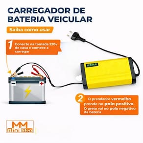 Seu funcionamento é simples: basta conectar o carregador à tomada e realizar a conexão correta nos polos da bateria. Com ampla faixa de tensão de entrada, pode ser utilizado em diferentes redes elétricas, proporcionando versatilidade na utilização.