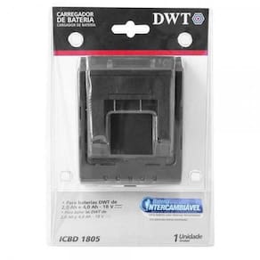 Carregador De Bateria 18V Icbd1805 Dwt Especificações: Indicado para carregar as baterias modelos IBD 1802 e IBD 1804, da linha intercambiável DWT. Tempo de carregamento aproximado : bateria de 2,0 Ah - 1 hora / bateria de 4,0 Ah - 2 horas. Carregador com carregamento convencional. Bivolt automático. Corrente de saída: 2,3 A Tempo de recarga Bateria de 2,0 Ah - 1 hora / Bateria de 4,0 Ah - 2 horas Tensão de saída 20 V Tensão do carregador de bateria 100 V- 240 V Bivolt automático Cor Predominante Preto Frequência Hz 50 Hz/60 Hz Modelo ICBD 1805 Marcadwt