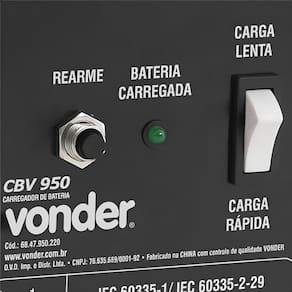 A Vonder é uma marca reconhecida pela qualidade e inovação em seus produtos, garantindo que você tenha em mãos um equipamento confiável e duradouro. O CBV 950 possui proteções contra superaquecimento e sobrecargas, além de avisos luminosos que indicam o status do carregamento. Com voltímetro e amperímetro digitais, você terá maior precisão e controle durante o processo de carga.