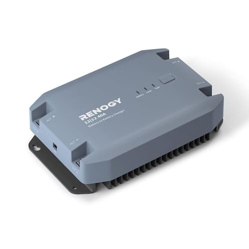 Carregador de bateria 12V 20A/40A DC para DC, usando carregamento em vários estágios em trailers, veículos comerciais, barcos, iates