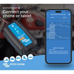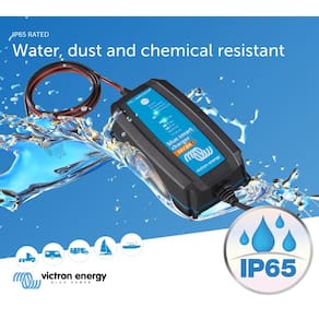 - Para todos os tipos de dispositivos e veículos: o carregador Victron Energy Blue Smart IP65 é resistente a respingos e pode ser utilizado em dispositivos em sua oficina e em veículos motorizados ou marítimos, como carros (clássicos), barcos, iates e motos