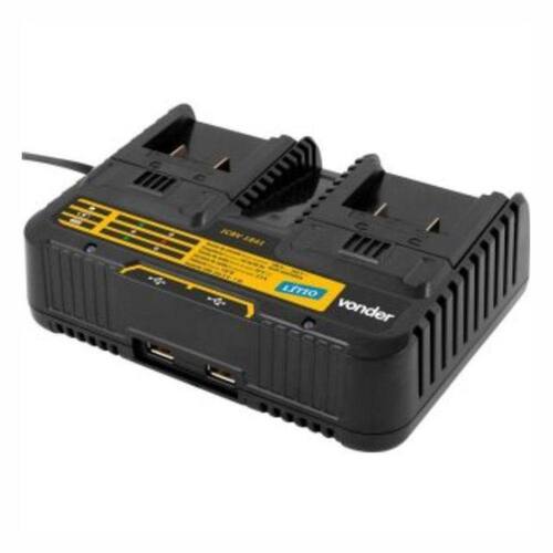 1 carregador de bateria duplo 18v icbv1841 - vonderPossibilita o carregamento simultâneo de duas baterias. Conta ainda com duas saídas usb 5v - 1a, possibilitando o carregamento de smartphones, por exemplo. Além de bivolt automático e leds indicadores de carregamento.Indicado para carregar as baterias modelos ibv 1802, ibv 1804 e ibv 1850, da linha intercambiável vonder. Carregador com carregamento convencional.Garantia legal: 90 dias + garantia contratual: 9 mesesDetalhes técnicos- modelo: icbv 1841;- tensão de entrad do carregador de baterias: 100 v - 240 v - bivolt automático;- frequência: 50 hz/60 hz;- tipo: carregamento convencional;- tensão de saída do carregador de bateria: 20 v;- corrente de saída do carregador de bateria: 2,3 a;- tempo de carregamento: bateria de 2.0ah - 60 minutos; bateria de 4.0ah - 120 minutos; bateria de 5.0ah - 140 minutose ibv 1850, da linha intercambiável vonder;Especificações técnicas:- modelo: icbv 1841;- tensão de entrad do carregador de baterias: 100 v - 240 v - bivolt automático;- frequência: 50 hz/60 hz;- tipo: carregamento convencional;- tensão de saída do carregador de bateria: 20 v;- corrente de saída do carregador de bateria: 2,3 a;- tempo de carregamento: bateria de 2.0ah - 60 minutos; bateria de 4.0ah - 120 minutos; bateria de 5.0ah - 140 minutose ibv 1850, da linha intercambiável vonder;