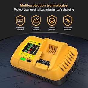 Carregamento rápido DCB118 para bateria Dewalt, substitua para carregamento rápido DeWalt 20V MAX e 60V MAX, compatível com todas as baterias 20V MAX* e 60V MAX* DEWALT (apenas carregador) - ?Especificação do carregador de bateria DCB118?Entrada: 120V; Saída: 22V 8,0A; Modelo: Carregador rápido DCB118 compatível com baterias Dewalt - ?Compatível com bateria Dewalt?100% compatível com bateria de íon de lítio Dewalt 20V e 60V MAX. Bateria de íon de lítio DCB208 DCB206 DCB205 DCB204 DCB203 DCB210 DCB240 DCB606 DCB609 e etc. Substituição para carregador rápido de bateria DCB105, DCB112, DCB118. - ?Carregamento rápido DCB118?Saída máxima de 8,0 A, fornece tempo de carregamento mais rápido para a bateria DeWalt, menos de 30 minutos para bateria de 2,0 Ah e menos de 75 minutos para bateria de 6,0 Ah. Carrega uma bateria DCB606 em 60 minutos. - ?Indicador LED?Não apenas informa se a bateria está carregando ou totalmente carregada, mas também verifica se a bateria está em boas condições. O resfriamento assistido por ventilador resulta em tempos de carregamento mais rápidos e tempo de inatividade reduzido. - ?Carregamento rápido DCB118, seguro e confiável?O carregador de bateria passou pela certificação CE/FCC/RoHS, entrada embutida de baixa tensão, saída curta, sobrecarga, sobrecorrente e proteção contra sobretemperatura, está equipado para proteger e prolongar a vida útil da bateria.