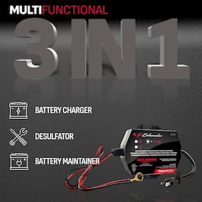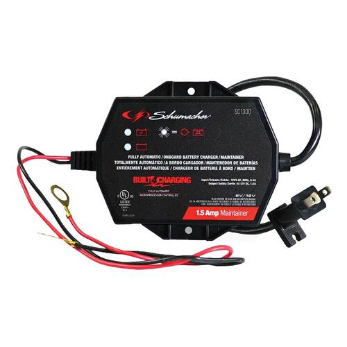Carregador, mantenedor e desulfator de bateria elétrico Schumacher - SC1300 3 em 1, totalmente automático, 1,5 A, 6 volts e 12 volts, montável para carros, motocicletas, tratores de gramado e esportes elétricos
