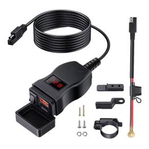 Carregador USB para motocicleta com voltímetro LED, duas portas de carregamento rápido (USB-C PD 30W + QC 3.0 30W), proteção contra sobrecarga, sobreaquecimento e excesso de corrente, botão on/off independente, resistente à água e poeira com tampa protetora emborrachada, fusível de 10A incluso.Tipo