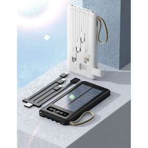 O Power Bank Solar de 20000mAh é o seu companheiro ideal para manter seus dispositivos carregados em qualquer lugar. Este power bank inovador vem com quatro portas de carregamento e uma série de características incríveis para atender às suas necessidades de energia.