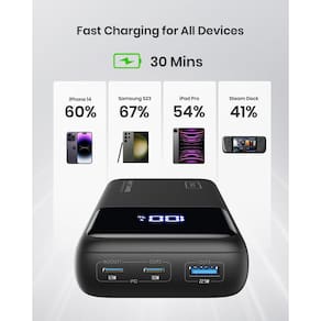 Banco de potência INIU, carregador portátil USB C de 25000 mAh e 65 W, bateria externa de 3 saídas de carregamento rápido PD QC para laptop MacBook Dell XPS iPad Tablet Steam Deck iPhone 15 14 13 Pro Samsung S22 etc. - ??Da INIU, o SAFE Fast Charge Pro?Experimente o carregamento mais seguro com mais de 38 milhões de usuários globais. Na INIU, usamos apenas materiais da mais alta qualidade, por isso temos a confiança de fornecer uma garantia de 3 anos líder do setor. - ??Carregamento rápido de 65 W para todos os dispositivos?Os inspiradores 65 W da INIU carregam seu MacBook Pro em até 50% em 30 minutos. Atenda às mais recentes necessidades de carregamento de seus telefones, tablets e Steam Deck, um recurso futurista no qual confiar. - ??25.000 mAh por uma semana?A fonte de alimentação massiva do carregador portátil USB C com carregamento rápido pode carregar o MacBook Pro 14,9 vezes ou o iPad Pro 12,9" 1,6 vezes, abundante até mesmo para dispositivos de grande capacidade. - ??Carregue 3 de uma vez?Portas triplas estão à sua escolha. Duas portas USB-C cabem diretamente no novo iPad e no novo iPhone, e uma porta USB-A para seus dispositivos antigos. - ??Compatibilidade ainda maior?O carregador de bateria INIU combina com a maioria dos laptops, tablets, celulares (iPhone, Samsung...) e dispositivos pequenos como AirPods. Cuide de suas necessidades de carregamento rápido e lento de forma inteligente. - ??O que você obtém?Banco de baterias USB c INIU 65W*1, cabo USB C para USB C*1, cabo USB A para USB C*1, manual do usuário*1, bolsa de viagem*1, garantia de devolução do dinheiro em 30 dias, garantia de 3 anos líder do setor e suporte técnico vitalício.
