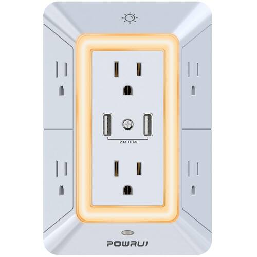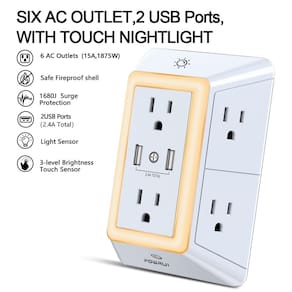 Especificações: Cor: Cinza Saída total USB: 5V/2,4A Tensão de entrada: 125 VAC; 60 Hz Máx. Corrente: 15A Classificação de potência máxima: 1875W Dimensões do produto: 14 x 9,7 x 6,6 cm Classificação de proteção contra sobretensão: 1680J Conteúdo da embalagem: 1 tomada múltipla com portas USB. 1 x manual de instruções (idioma português não garantido). 1 caixa de papel. - Saída USB multifuncional: 2 portas USB de carregamento rápido, filtro de energia de 3 lados, com 6 tomadas espaçadas por adaptador e luz noturna LED nas bordas. Tomando o lugar de um soquete padrão, mas oferecendo muito mais plugues. Pode ser utilizado em qualquer sala ou áreas públicas internas. Economize espaço com design 3D exclusivo. - Amplo espaço: 6 tomadas AC embutidas 1680 Joules protetor contra sobretensão com espaço de 5,3 cm de comprimento no meio, maior do que o soquete padrão de 3,8 cm. Espaçamento maior torna mais fácil de usar para todos os tipos de equipamentos. 2 portas USB inteligentes (total de 2,4 A) podem carregar seu dispositivo inteligente rapidamente. Observação: este produto é uma tomada com vários plugues. Para qualquer dispositivo de classificação de potência grande com mais de 1000 W, como AC, aquecedor de ambiente, conecte diretamente à tomada duplex. Não sugerimos usar este produto. - Luz noturna inteligente: com sensor do crepúsculo ao amanhecer, liga automaticamente apenas quando a iluminação ambiente se torna insuficiente. Com sensor de toque, três níveis de brilho ajustável permitem que você escolha a quantidade certa de luz para suas próprias necessidades. Você também pode optar por ligar/desligar a luz noturna manualmente. - Circuito protetor de sobretensão confiável: um circuito protetor de surto complementar de 3 níveis composto por TVS, MOV (varistor de óxido metálico), GDT (tubo de descarga de gás), com capacidade mínima de absorção de energia de 1680J, pode proteger seus dispositivos muito mais rapidamente e de forma confiável do que circuitos de proteção contra surtos MOV (varistor de óxido metálico) de 1 nível de outra marca. - Nosso serviço pós-venda: Certificado ETL, nosso atendimento ao cliente amigável e confiável responderá a você dentro de 24 horas. Você pode comprar com confiança, com nossa devolução de 30 dias e substituição de 12 meses.