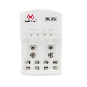 Carrega 4 pilhas AA, 4 AAA ou 2 baterias 9V entre 6 e 8 horas