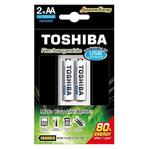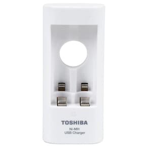 e mais prática. O carregador de pilhas portátil da Toshiba carrega via