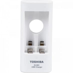 Carregador de Pilha USB p/2 pilhas AA/AAA min.2.000 mAh c/4 pilhas TOSHIBA Faça sua vida melhor e mais prática