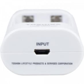 O carregador de pilhas portátil da Toshiba carrega via USB até duas pilhas ao mesmo tempo nos formatos AA/AAA. É ideal para viagens, eventos, e onde for não vai se preocupar com gastos de pilhas, ou seja, pronto para usar a qualquer momento Ele possui corte automático de energia e é de fácil utilização e conexão. Funciona através do computador, carregador de smartphone ou qualquer carregador USB regular com tomada para micro USB.