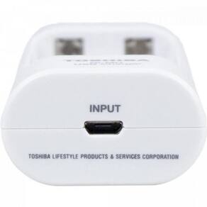 O carregador de pilhas portátil da Toshiba carrega via USB até duas pilhas ao mesmo tempo nos formatos AA/AAA. É ideal para viagens, eventos, e onde for não vai se preocupar com gastos de pilhas, ou seja, pronto para usar a qualquer momento Ele possui corte automático de energia e é de fácil utilização e conexão. Funciona através do computador, carregador de smartphone ou qualquer carregador USB regular com tomada para micro USB.