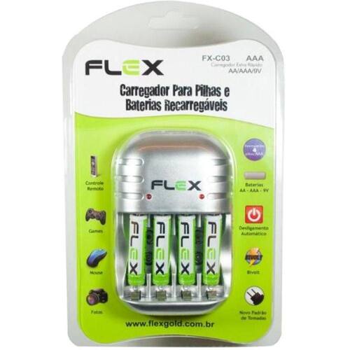 Carregador De Pilhas Aa/aaa/9v Fxc03aaa Bivolt Flex O Carregador de Pilhas FXC03AAA da Flex é a solução prática e segura para carregar baterias AA, AAA e 9V. Com capacidade para 2 a 4 pilhas AA/AAA ou 1 a 2 baterias 9V ao mesmo tempo, ele oferece segurança avançada: monitoramento de voltagem, proteção contra curto-circuito e desligamento automático quando a carga completa. Com canais de carga independentes e bivolt automático, acompanha 4 pilhas recarregáveis AAA de 1100mAh, garantindo performance e praticidade.Cor:Cinza Alimentação:Bivolt automático (AC 100V-240V) Pesquisa:carregador de pilhas|carregador|pilhas|carregador flex|flex|carregador bivolt|bivolt|carregador AA|carregador AAA|FXC03AAA|carregador de bateria|bateria