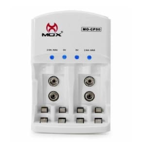Carregador para Pilhas AA/AAA e Bateria 9V Recarregáveis Bivolt - MO-CP50