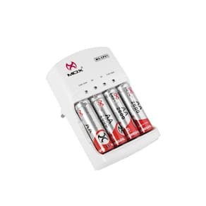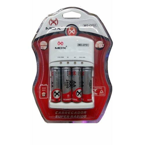 DESCRIÇÃO: Carregador De Pilhas RECARREGÁVEIS Mox CP51 - Para 4 Pilhas Nimh Aa Ou Aaa Ou 2 Baterias 9V RECARREGÁVEIS. - Auto Stop,Desliga Com A Carga Completa Para Pilhas E Baterias. - 4 Leds Na Cor Azul Indicando O Processo De Carga. - 4 Canais De Carga Independentes. - Bi-Volt AUTOMÁTICO - Plug Articulado. - Entrada: Ac 100 240V - 50/60HZ, 50MA 5W MÁX - SAÍDA: Dc 2,4V - 400 Ma (Aa/Aaa) - Aa 200MA Aa 200MA 4 - Aaa 200MA 2 Aaa 200MA 4 - 9V Dc 20MA