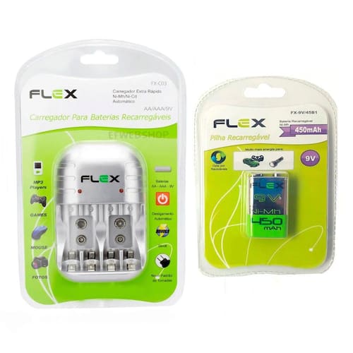 + 1 BATERIA 450 mAh 9V FLEX RECARREGÁVEL