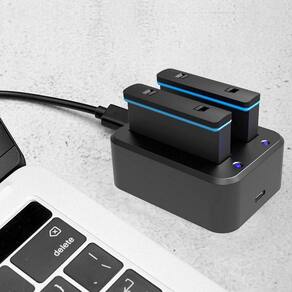 Uma das principais vantagens deste carregador é a sua capacidade de carregar uma ou duas baterias da câmera Insta360 X3 simultaneamente. Isso significa que você pode ter sempre uma bateria de reserva pronta para uso, permitindo que você continue filmando sem interrupções.