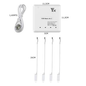 Carregador Hub 4 Baterias Drone DJI Mavic Air 2 / Air 2S Carregador Hub 4 Baterias Drone DJI Mavic Air 2 /Air 2SHoje os drones tem mostrado o quanto é um equipamento essencial para diversos segmentos, seja ele para uma diversão, área construção civil, agricultura e entre vários outros esportes onde há a necessidade de termos uma filmagem aérea dela localidade. Esses equipamentos consomem muita bateria, uma vez que é precisa grande energia para propulsionar o drone para o alto, e essa quantidade de bateria faz termos mais que uma unidade, normalmente de 2 a 4 baterias. Carregar essas baterias uma de cada vez é um trabalho o quanto desgastante pois a necessidade de troca é constante, por esse motivo que o carregador hub para 4 baterias é um acessório importantíssimo para você ter em sua maleta de acessório. Com o hub você tem possibilidade de carregar até 4 baterias do drone Mavic Air2 ou Air2 ao mesmo tempo e ainda o controle caso haja necessidade.O Carregador Hub 4 Baterias para Drone DJI Mavic Air 2/Air 2s irá te facilitar na hora de carregar suas baterias, dando a você maior agilidade, maior flexibilidade e segurança, além disso, ele possui um sistema inteligente onde irá começar o processo de carga com a bateria que ja possui maior carga, desta forma, ele irá te liberar uma bateria mais rapidamente. Principais Vantagens: - Design leve e portátil, - Sistema de carregamento inteligente - Led indicativos verde e vermelho - Carregamento de baterias e controle ao mesmo tempoModo de usar ou instalar: Sua instalação é bem fácil e prático Conecte as baterias nos conectores Caso haja necessidade, utilize as portas usb para carregar um celular ou seu radio controle. Conecte o carregador em um ponte de energia. Ligue as baterias. Os Leds irão te informar como esta o processo de carga, onde vermelho indica carregando e verde carga completa Assim que sua bateria estiver com a carga completa, pode retirar do conector e assim utilizar.Dados técnicos: Marca: Sunnylife Modelo:air2-ls-cdq Número de Portas: 4 para baterias e 2 Usb Entrada: 100-240V 50/60Hz Saída 1: DC 12.6V / 13.2V 8A Ramificação 12.6V/13.2 2A Saída 2 USB 5V/3A Dimensões: 11,5,cm a x 11,5,cm c x 3,00cm L Peso: 410gr Cor: BrancoCompatibilidade: Bateria de Drones Mavic Air 2 e Air 2SItens Inclusos: 1 x Carregador Hub 4 Bateria de Drones Mavic Air 2 e Air 2S 1 x Cabo energia Garantia: 90 dias contra defeito de fabricação.Baterias não inclusas. Imagem meramente ilustrativa.