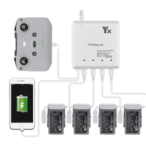 Carregador hub para 4 baterias de drone dji mavic air Carregador hub para 4 baterias de drone dji mavic air Hoje os drones tem mostrado o quanto é um equipamento essencial para diversos segmentos, seja ele para uma diversão, área construção civil, agricultura e entre vários outros esportes onde há a necessidade de termos uma filmagem aérea dela localidade. Esses equipamentos consomem muita bateria, uma vez que é precisa grande energia para propulsionar o drone para o alto, e essa quantidade de bateria faz termos mais que uma unidade, normalmente de 2 a 4 baterias. Carregar essas baterias uma de cada vez é um trabalho o quanto desgastante pois a necessidade de troca é constante, por esse motivo que o carregador hub para 4 baterias é um acessório importantíssimo para você ter em sua maleta de acessório. Com o hub você tem possibilidade de carregar até 4 baterias do drone mavic air ao mesmo tempo e ainda o controle caso haja necessidade. O carregador hub 4 baterias para drone dji mavic air 2 irá te facilitar na hora de carregar suas baterias, dando a você maior agilidade, maior flexibilidade e segurança, além disso, ele possui um sistema inteligente onde irá começar o processo de carga com a bateria que ja possui maior carga, desta forma, ele irá te liberar uma bateria mais rapidamente. Principais vantagens: - design leve e portátil, - sistema de carregamento inteligente - led indicativos verde e vermelho - carregamento de baterias e controle ao mesmo tempo Modo de usar ou instalar: Sua instalação é bem fácil e prático Conecte as baterias nos conectores Caso haja necessidade, utilize as portas usb para carregar um celular ou seu radio controle. Conecte o carregador em um ponte de energia. Ligue as baterias. Os leds irão te informar como esta o processo de carga, onde vermelho indica carregando e verde carga completa Assim que sua bateria estiver com a carga completa, pode retirar do conector e assim utilizar. Dados técnicos: Marca: yx Modelo: yx-534 Número de portas: 4 para baterias e 2 usb Entrada: 100-240v 50/60hz Saída 1: dc 13.2v 8a Ramificação: 13.2 2a Saída 2 usb: 5v/3a Dimensões: 11,5,cm a x 11,5,cm c x 3,00cm l Peso: 410gr Cor: branco Compatibilidade: compatível com bateria de drones mavic air Itens inclusos: 1x carregador hub 4 bateria de drones mavic air 4x cabos para conectar nas baterias 1x cabo energia Baterias, controle e celular não inclusos Imagens meramente ilustrativas de 90 dias após o recebimento do produto Esta é válida para todo o território nacional, e ela cobre defeitos de fabricação. Para maiores informações consulte o site do fabricante ou contate-nos pelos nossos canais de atendimento. Por que comprar seu equipamento com a proaventura Homologação Anatel: 045732007248