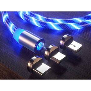 Carregador Magnético Imã Cabo Neon Luminoso 3 Em 1 Micro Usb