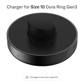Oura Carregador Ring Gen3 - Tamanho 10 - Carga total da bateria em 60-80 minutos - Base de carregamento e cabo USB-C - OURA CARREGADOR GEN3 ANEL - Esta é a única maneira de carregar o seu Oura Ring Gen3. Este carregador de cabo USB-C é específico do tamanho, então certifique-se de obter o tamanho adequado ao seu Oura Ring Gen3. Você pode encontrar o tamanho do seu anel Oura Gen 3 no interior do seu anel inteligente. - Os carregadores são específicos de tamanho – o tamanho do seu anel Oura Gen3 pode ser encontrado no interior do seu anel inteligente. - Tempo de carregamento – Seu anel Oura Gen 3 pode levar de 20 a 80 minutos para carregar totalmente no carregador Oura Gen3, dependendo do nível atual da bateria. - Nível da bateria no aplicativo OURA – Você pode verificar o nível da bateria tocando no ícone circular no canto superior direito da guia Página inicial. - Conformidade com o cabo de alimentação – O cabo USB-A para USB-C Oura Ring Gen3 destina-se a ser fornecido por uma fonte externa de 5 VCC que esteja em conformidade com o padrão IEC 62368-1.
