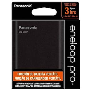 Carregador portátil USB com função power bank. Carrega de 1 a 4 pilhas AA ou AAA Ni-MH. Controle de carga individual por slot. Possui 4 LEDs indicadores de status de carga. Saída USB 5V/1A para recarga de dispositivos móveis. Alimentação via Micro-USB 5V DC.Tipo