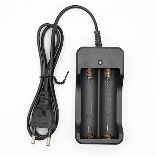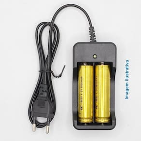 Carregador duplo de alta qualidade, universal que recarrega as principais baterias de: lanterna, laser, som, câmeras, etc. ou baterias de 18mm .