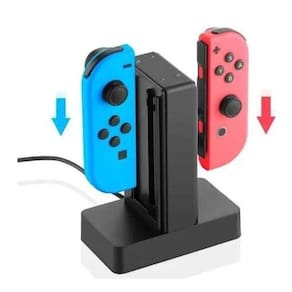 Características: - Baterias Carregadas Simultaneamente: 4 (max) - Carregadores de bateria: LEDs individuais. - Compatibilidade do Modelo: Nintendo Switch - Comprimento do cabo / cabo: 1,5m - Tensao: 5 V - Fonte de energia: alimentada por USB - A base proporciona estabilidade e seguranca