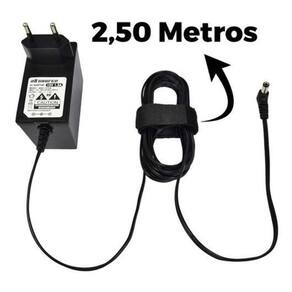 Quais as especificações do produto - input: bivolt 110 - 240v 50-60hz 0.33a - output: 15v - 1.5a positiva - plug: 5,5mm x 2,5mm - comprimento do rabicho: 2,50 metros - cabo de força: acompanha - medidas da fonte: comprimento = 8,7 cm / largura = 4,8 cm / altura = 2,7 cm - cor: preto - atente-se também ao pino conector, ele deve ser igual ao utilizado no seu aparelho comprimento e largura .