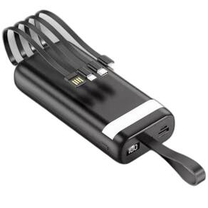 Carregador Portátil 20000mAh Com Cabos Embutidos Preto Powerbank 20.000 mAh Portátil Carregamento Rápido