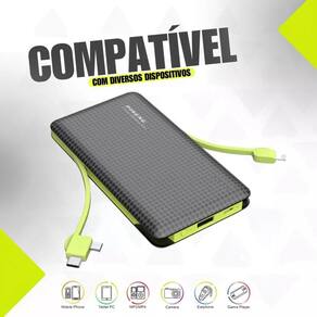 - agite para começar a carregar; - indicador de nível de carga em leds; - usa bateria de polímero de lítio para torna-lo mais fino e de alta performance; - tecnologia pass through charging, pode carregar seus dispositivos e ser recarregado ao mesmo tempo; - permite a recarga simultânea de dois aparelhos com muito mais velocidade; - moderno sistema de gel, apresenta baixa dilatação e elimina riscos de vazamento; - chip inteligente de reconhecimento, detecta automaticamente a tensão certa para não danificar seu celular; - construído em proteção da bateria ic para evitar o excesso de carga, sobre o descarregamento e curto-circuito;