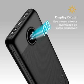 Características:: Modelo: PROBAT017 Capacidade: 10.000mAh Entrada Micro-USB: 5V 2A | 9V 2A Entrada USB-C: 5V 3A | 9V 2A Saída USB-C: 5V 3A | 9V 2,2A | 12V 1,5A (Power Delivery 20W) Saídas USB-A: 5V 3A | 9V 2A | 12V 1,5A (Quick Charge 18W) Tempo para carregamento completo da Bateria: 4-6 horas Entrada e saída USB-C (Carregamento Power Delivery) 2 saídas USB-A Smart Charge até 18W (Quick Charge) Display digital que mostra a exata quantidade de carga disponível Carregue até 3 dispositivos simultaneamente Multi Protect System: Proteção contra sobrecorrente, sobretensão e superaquecimento Bateria Premium Tipo A super resistente e segura, podendo ser levada em viagens de avião Compatível com Games, Smartwatch, Caixas de som Bluetooth, Fones Bluetooth e outros dispositivos Certificações: ANATEL, CE, FCC e RhOS Código da Certificação:Homologação Anatel 13153-20-13317
