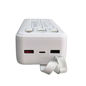 Capacidade de 24.000mAh, 1x Micro USB, 1x Tipo-C (Entradas), 1x USB-A, 1x Tipo-C (Saídas), Cabos embutidos (Lightning, Tipo-C Android, USB-A), Tensão de Entrada 5V/2A, Tensão de Saída 5V/2.1A máx.Tipo