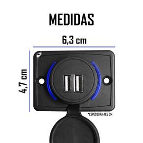 Carregador Tomada Usb Dupla Automotivo Orbe 9V A 36V Entrada 1A 5V Saída Carro Van Ônibus Caminhão Descrição:O carregador usb light possui duas saídas retroiluminadas de usb de 5v, possibilitando o carregamento de diversos dispositivos. Com design compacto e discreto o carregador foi planeado com retroiluminação, ajudando o usuário a encontrar o conector mesmo no escuro. As saídas de carregamento são compatíveis com a maioria dos smartphones e a proteção contra curto-circuto protege os aparelhos de qualquer surto de tensão. Corrente de carregamento é 1,5a e com baixo consumo de apenas 0,3w. Por ser um carregador fino, não é necessário fazer furação para encaixe, apenas necessitando furação para fixação com dois parafusos. Características:- tampa protetora para prevenir o acúmulo de poeira ou sujeira e danos quando em desuso prolongando a vida útil do dispositivo.- carregador usb duplo - luz suave de sinalização- led indicador auxilia o usuário a encontrar o encaixe mesmo quando a claridade estiver baixa. Especificação técnica:Alimentação: 9 32vCorrente de carga máxima: 2x 1,5aTensão de saída: 5vConsumo: 0,3wGrau de proteção: ip65Cor: pretaTemperatura de operação: -20c 60cQuantidade led's : 2 ledCor da iluminação: azulPeso aproximado: 100gDimensões a x l x p: 48 x 64 x 18mm Conteúdo da embalagem:- 01 carregador usb duplo