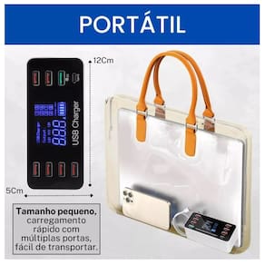 Equipado com 8 portas USB, este carregador permite que você carregue vários dispositivos simultaneamente, otimizando o tempo e mantendo seus eletrônicos sempre prontos para uso.