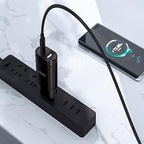 Possui uma porta USB-C que suporta a tecnologia de carregamento rápido.