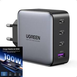 Carregador gan de 4 portas ugreen nexode 100w carregador usb c de 4 portas 3 portas usb c e 1 porta usb a suporta saída total de até 100w, é compatível com quase todos os dispositivos, de laptops usb c a telefones celulares, switches e outros dispositivos.