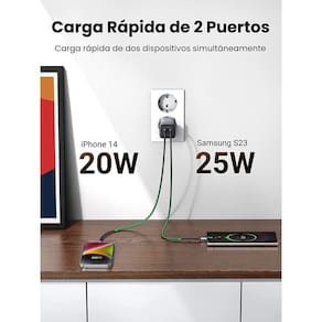 Alimente seus dispositivos simultaneamente 25w + 20w quando ambas as portas são usadas juntas.