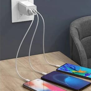 Carregador Ultra Rápido Gan 65W com 3 portas (1 USB-A, 2 USB-C). Tecnologia GaN para menor aquecimento e maior eficiência. Compacto e potente.Tipo