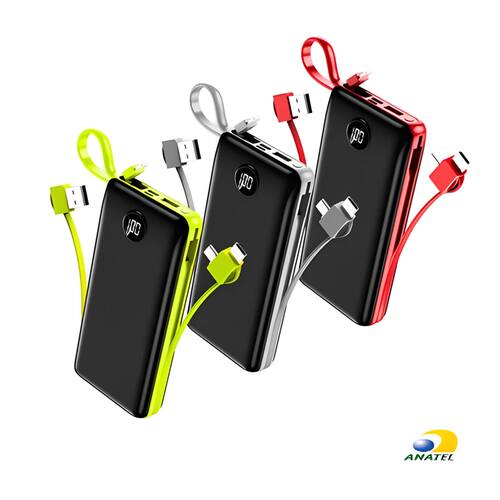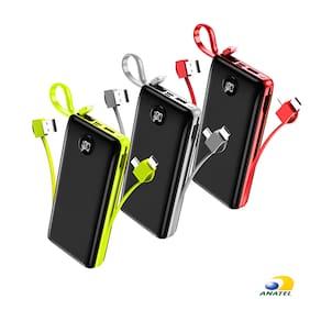 - Capacidade: 20.000mAh 3.7V 74Wh - Carregamento rápido - Com indicador de Carga; - 2 Cabos embutidos - Cabos: Lightning, Usb, Micro e Type-C; - Compatível: celulares, tablets, gps, fones ou outros pequenos dispositivos eletrônicos simultaneamente. - Versátil: permite a recarga simultânea de dois aparelhos ou mais. - Saídas: 5V/2.1A - Anatel 084352211767 - Cores: Preto Verde, Branco Cinza e Preto Vermelho (Envio de acordo com a disponibilidade de estoque)