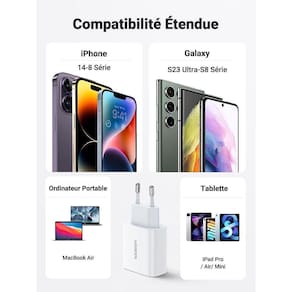 O carregador de parede da popular marca ugreen é um acessório confiável para carregamento rápido de vários tipos de dispositivos. O modelo possui um usb-c que suporta o protocolo pd.Possui também um sistema de segurança eletrônica inteligente em forma de chip moderno. Ele seleciona automaticamente as configurações atuais do dispositivo que está sendo carregado.Graças a isso você pode ter certeza de que a bateria não será sobrecarregada durante a operação do carregador ugreen. O sistema também protege contra picos de energia, curtos-circuitos e superaquecimento do carregador e do dispositivo que está sendo carregado.O material resistente ao fogo de alta qualidade do qual é feito o case bem como a construção sólida deste modelo o tornam um produto que irá atendê-lo por muito tempo com sua funcionalidade.Padrão de carregamento rápido power delivery.Um para todos o adaptador de carregamento usb c suporta power delivery 3.0/2.0 e quick charge 4.0/3.0, protocolo de carregamento rápido pps e carregamento super rápido galaxy 25w.Seguro e confiável o adaptador de energia usb c de 30w protege os dispositivos conectados contra sobrecarga sobrecorrente sobretensão sobretemperatura e curto-circuito.Quão poderoso é este carregador usb-cEste carregador usb c suporta a saída máxima de 30w compatível com versões anteriores de 25w/20w.Saída 5v/3a, 9v/3a, 12v/2,5a, 15v/2a, 20v/1,5a pps 3,311v/2,7a 30w máx. Entrada 110v - 220vO carregamento rápido é compatível com os smartphones google pixel e galaxySim. Este carregador de 30w é compatível com pixel 7/ 7 pro/ 6/ 6 pro/ 6a/ 5, galaxy s23/ s23+/ s23 ultra/ s22/ s22+/ s22 ultra/ s21/ s21+/ s21 fe/ s20/ s20+/ s20 ultra/ s10/ s10+/ s9/ s8/ note 20/ a52/ a52s/ a70/ a72/ a33, etc.Quais protocolos de carregamento rápido são suportados por este carregador usb-c de 30wEste carregador usb c de 30w suporta vários protocolos de carregamento rápido, como power delivery 3.0 pps, quick charge 4.0+/3.0, fcp para ser compatível com vários dispositivos.MultiproteçãoContra curto-circuito sobretensão sobreaquecimento sobrecorrente, etc.Quais as dimensões e peso desse carregadorO tamanho do carregador é de 5,4 x 4,6 x 2,5 cm.O peso é de 65 gramas.Apenas carregador de parede usb-c de 30w cabo de carregamento não incluído.O que você obtém apenas carregador de parede usb-c de 30w cabo de carregamento não está incluído.Certificado de homologação anatel 051832104311MarcaUgreenCor brancoDimensões da embalagem11,3 x 6,8 x 2,7 cm 90 gramas