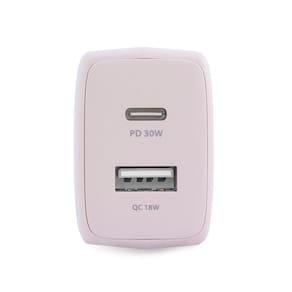 Carregador USB-C/USB com 2 portas, potência total de 30W. Suporta tecnologias Power Delivery e Quick Charge para carregamento rápido e seguro. Entrada bivolt (100-240V). Inclui manual e garantia de 24 meses.Tipo